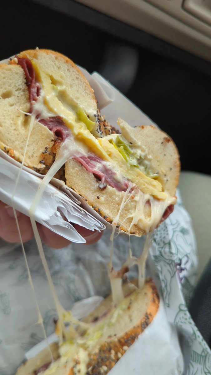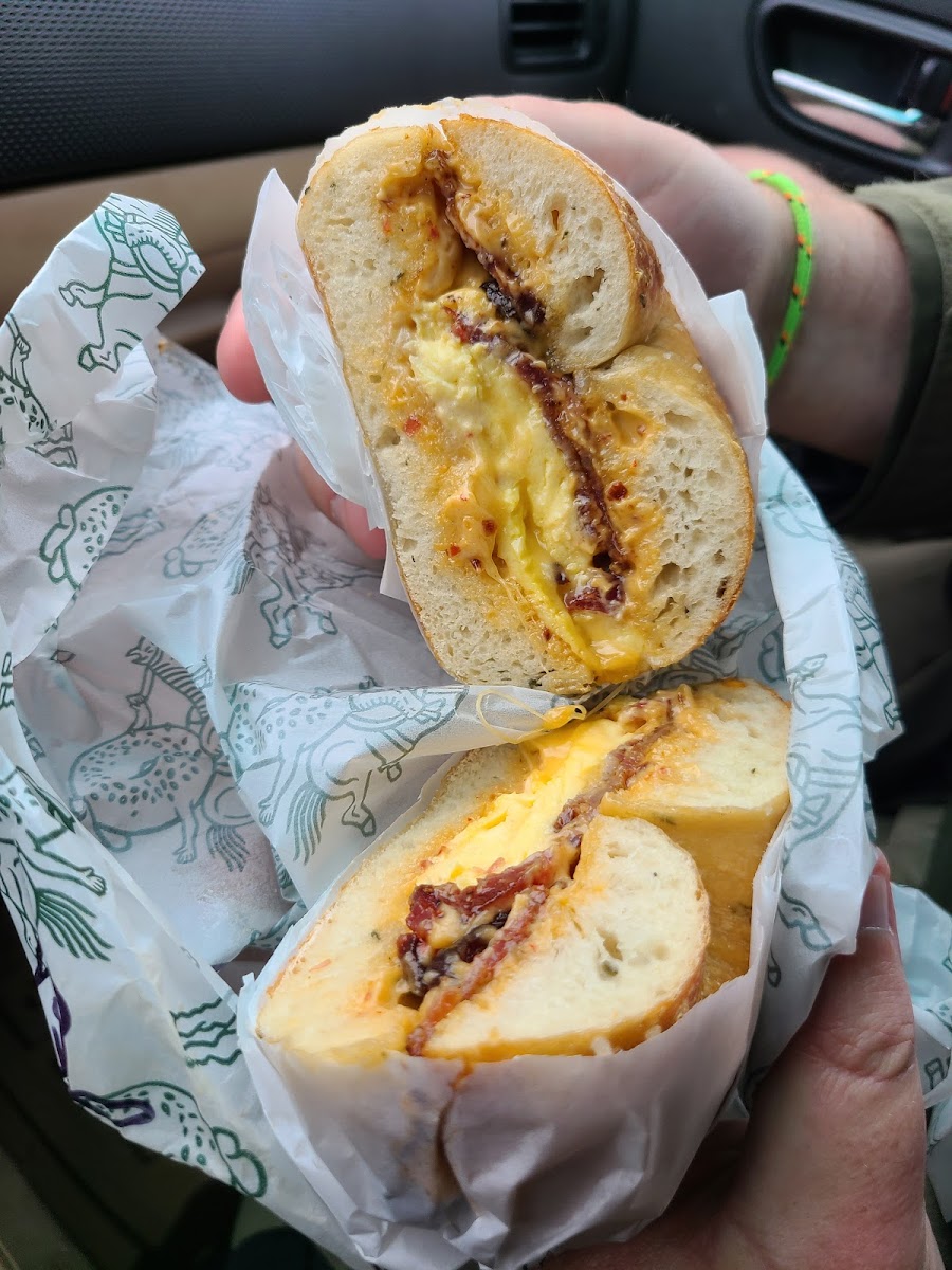 Highly recommend Howdy Bagel if you’re in the Tacoma or Seattle area. Don’t let the lines discourage you. They’re worth the wait but also the lines go by quick. The workers at Howdy Bagel are friendly and fast. I tried the Hot to Go on an everything bagel, and it was delicious. I can’t wait to try their other items. Highly recommend 10/10!