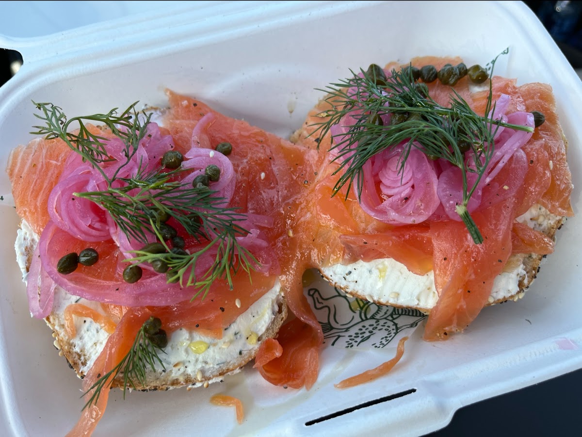 Such a cute hidden gem in the area. I tried the Lox in the Box and Grit City Lox—it looked amazing, and tasted great. Grabbed a couple of different cream cheeses and handmade bagels to go, and they were all good. They also have cute merch that adds to the charm. Would definitely go back if I'm in the area. They stop making hot sandwiches at 2pm.