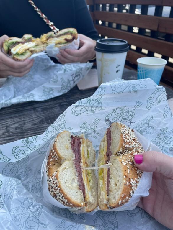 There’s a sense of community in the air—locals swinging by with dogs, conversations unfolding over intricately layered sandwiches, and a subtle rush of excitement from newcomers drawn by the steady stream of people who've found something special here. The setting, sprinkled with small touches like seasonal decor and local merchandise, enhances that feeling of a place rooted in its home, yet open and welcoming to every visitor. It’s a spot where the pace of the day slows just enough to let you appreciate the little rituals of morning, from the clink of coffee cups to the satisfying snap of a fresh bagel.